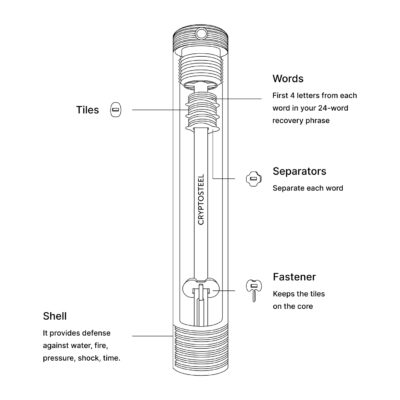 Cryptosteel Capsule — це першокласний інструмент для автономного офлайн-зберігання цінних даних без залучення третіх осіб. Пристрій із цільного металу, розроблений для виживання в екстремальних умовах, працює майже за будь-яких обставин. Він сумісний із більшістю алгоритмів розподілу секретів і генерації ключів.