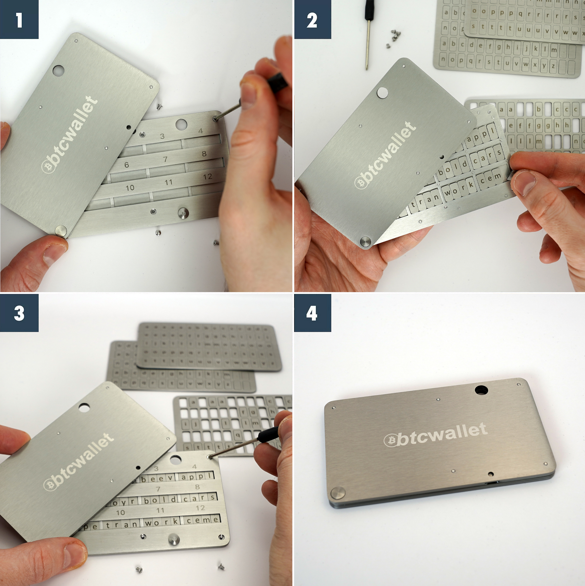 FoldTab S1 – це міцний сталевий мнемонічний планшет для зберігання та захисту вашої 24-слівної сід-фрази, призначений для стійкості до вогню, води – та більше. Використовуючи символьні плитки, ви відтворюєте вашу фразу відновлення у сталевому блоку, створюючи майже незнищенний резервний бекап.